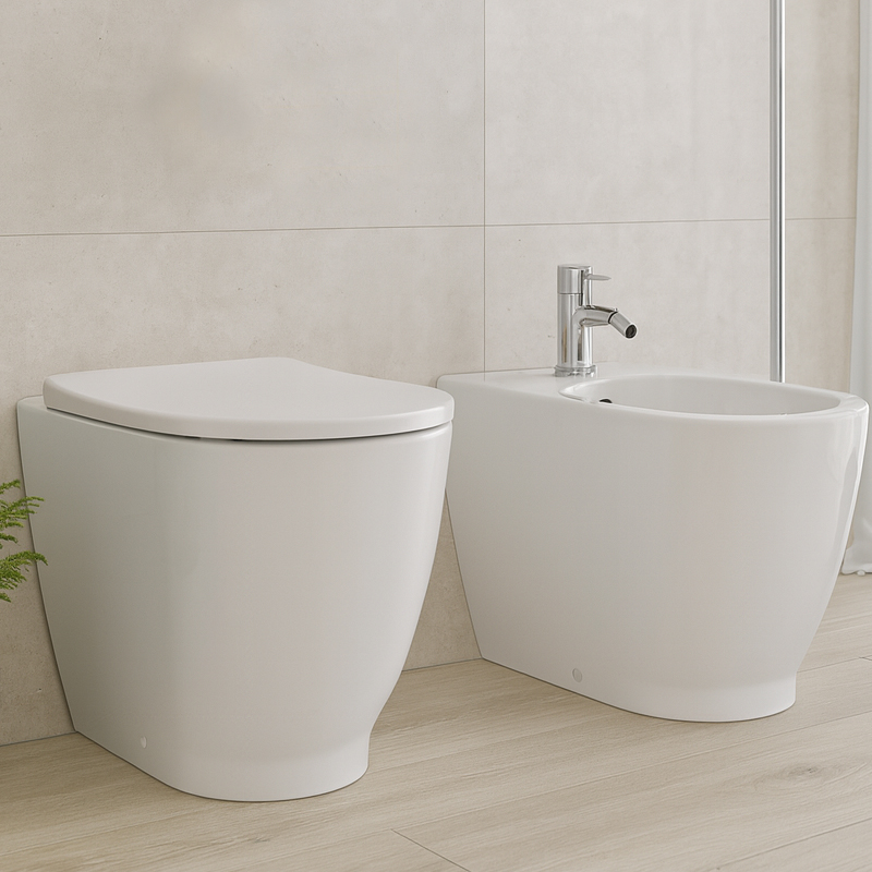 La COPPIA SANITARI VASO BIDET E COPRIVASO RALLENTATO GEBERIT ACANTO A TERRA RIMFREE è uno degli ultimi proggetti nati in casa Geberit nel 2024. Con la nuova Serie Acanto Geberit di sanitari a terra e sospesi, Geberit apre nuovi orizzonti sulle prestazioni di scarico, capacità portante del sedile per i WC e sull’installazione.