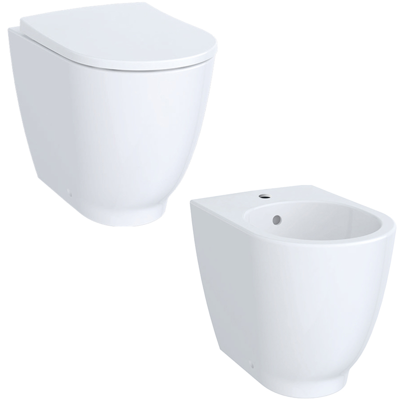 La COPPIA SANITARI VASO BIDET E COPRIVASO RALLENTATO GEBERIT ACANTO A TERRA RIMFREE, è in materiale vetrochina. Il coperchio avvolgente del WC, realizzato in duroplast antibatterico, ha una chiusura ammortizzata (soft-close) ed è dotato di cerniere a sgancio rapido per consentire un’igiene più approfondita e facile da effettuare.