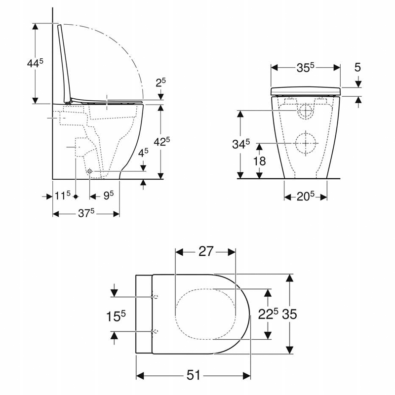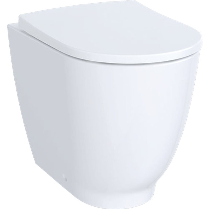 La linea Acanto Geberit di sanitari a terra, presenta un'installazione a pavimento filomuro e offre la compatibilità di scarico a parete (orizzontale) o a pavimento (verticale).