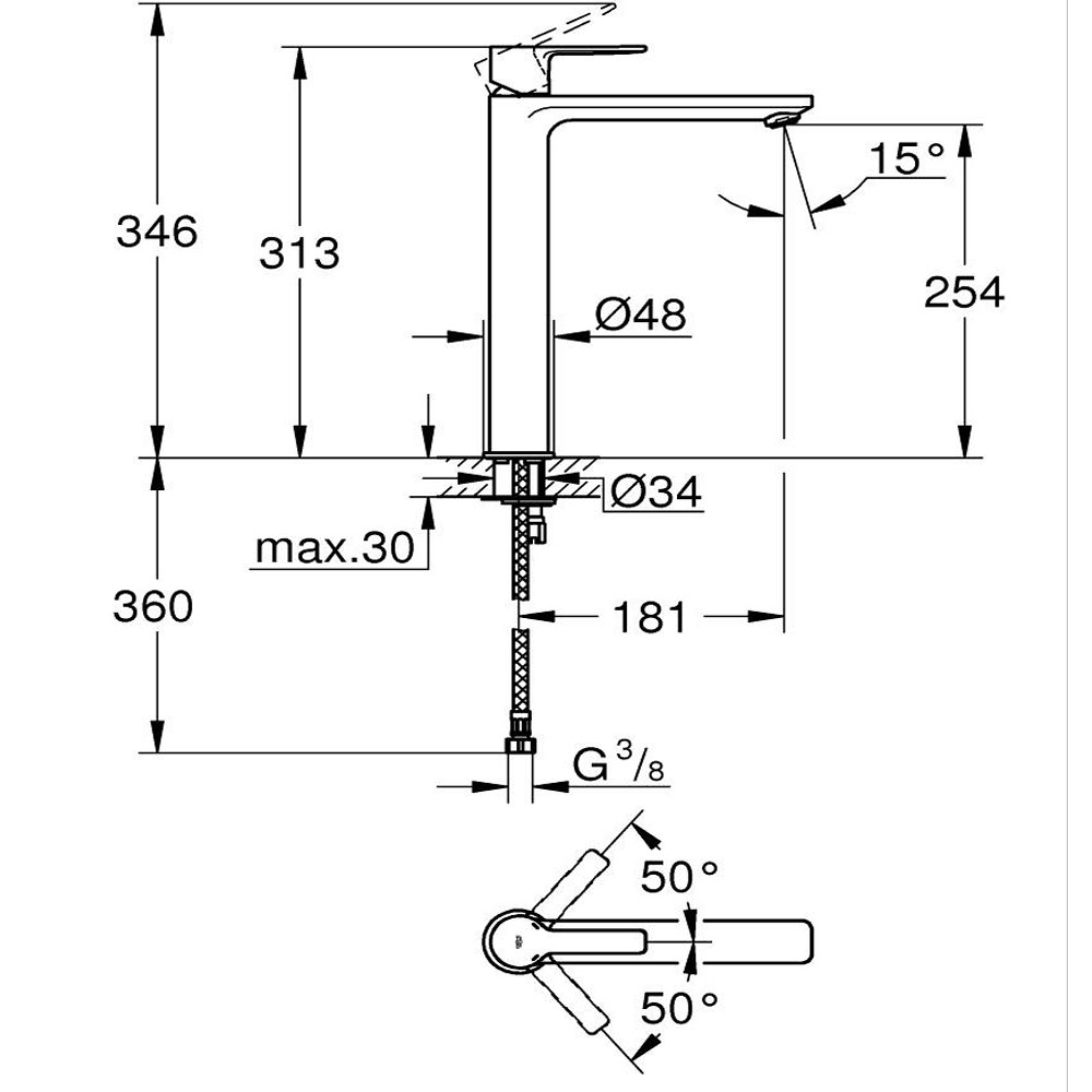 Il rubinetto lavabo Grohe Lineare è dotato di serie di limitatore di temperatura.