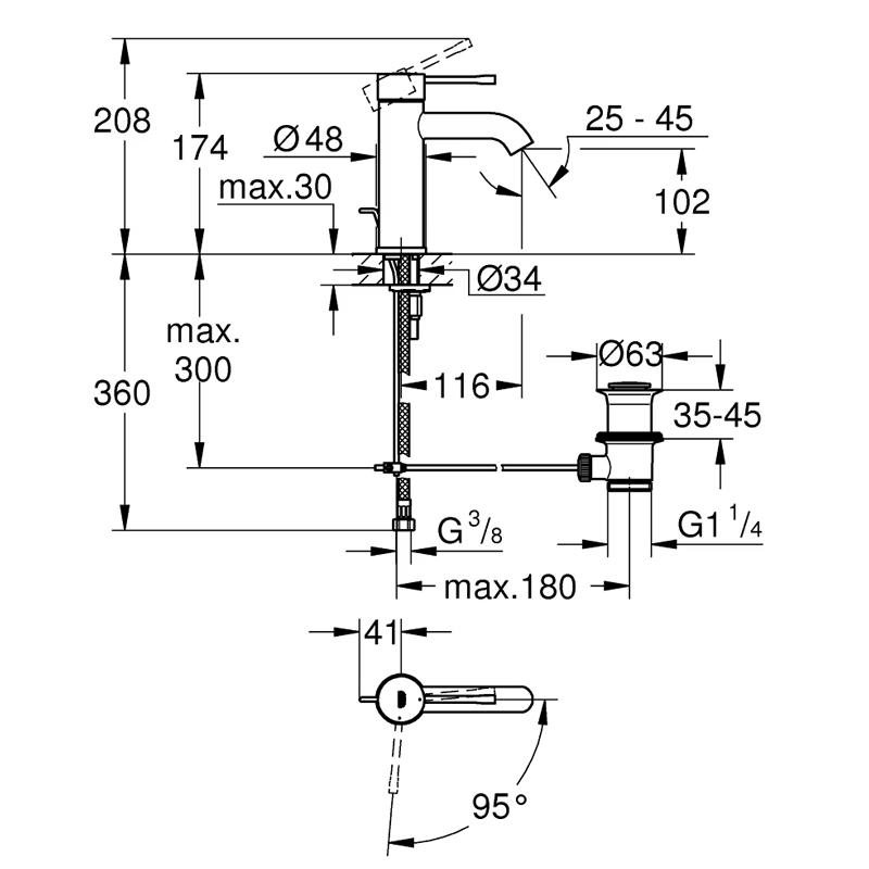 Il rubinetto lavabo per il bagno Grohe Essence è caratterizzato da una bocca di erogazione con altezza 102 mm e mousseur regolabile con tecnologia GROHE AquaGuide in modo da poter consentire una maggiore praticità nel riempire anche grandi contenitori. Vuoi risparmiare? Grohe ti propone la sua soluzione! Il sistema GROHE EcoJoy™ garantisce il risparmio energetico e idrico fino al 50%, ma senza perdere il giusto comfort con un flusso d’acqua diretto e continuo. Inoltre, la tecnologia EcoMode a risparmio energetico assicura una riduzione di consumi e costi nel quotidiano: quando la leva del miscelatore è in posizione centrale viene erogata soltanto acqua fredda, evitando l’attivazione involontaria di quella calda; quest’ultima entra in funzione solo ruotando la leva verso sinistra.