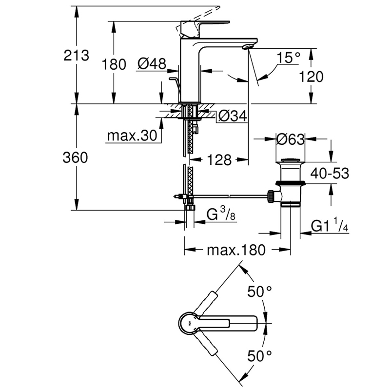 Il rubinetto lavabo per il bagno Grohe Lineare è dotato di serie di limitatore di temperatura.
