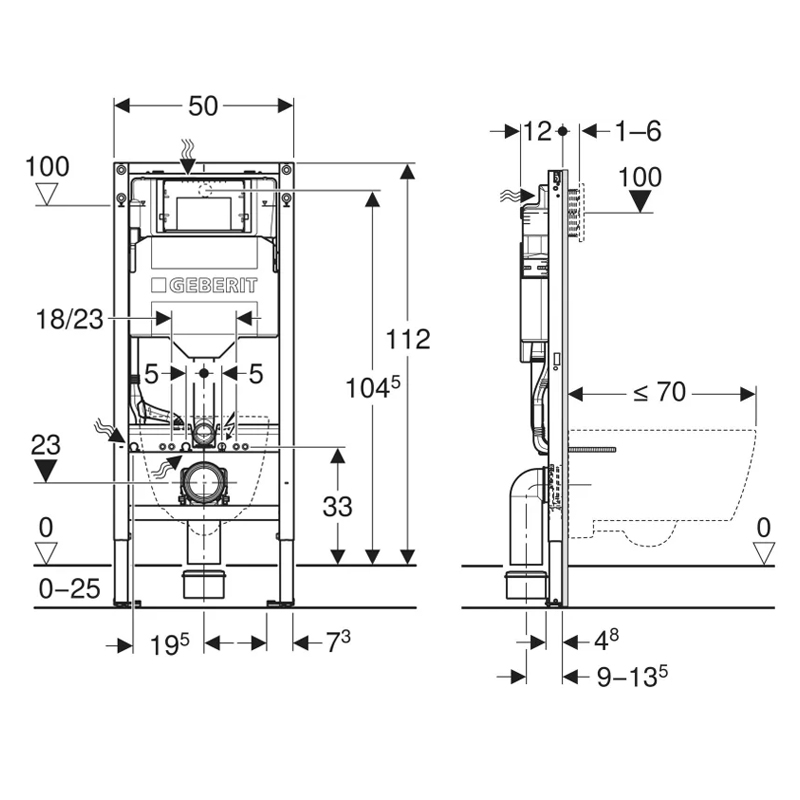 Il modulo sanitario Geberit Duofix ha un'altezza di 112 cm, una larghezza di 50 cm e una profondità di montaggio di 12 cm.