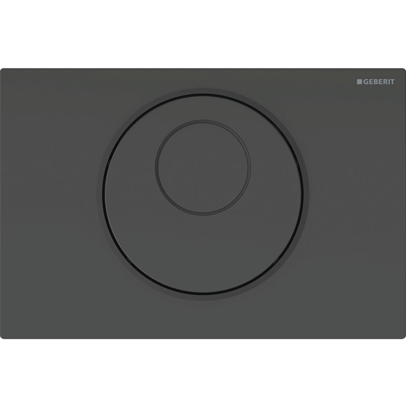 La serie elettronica Geberit SIGMA di placche di comando, realizzata in acciaio inox, è caratterizzata da una finitura nero lucido con anelli nero opaco.