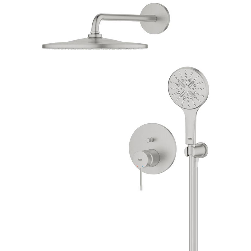 La Gamma di docce Grohe è caratterizzata da tecnologie e design. La tecnologia GROHE DreamSpray consente di avere un flusso d’acqua omogeneo a tutti gli ugelli del soffione. Grazie alla finitura cromato spazzolato questo set doccia Grohe è adatto a ogni arredamento, rendendo l'ambiente da bagno elegante e unico nel suo stile!