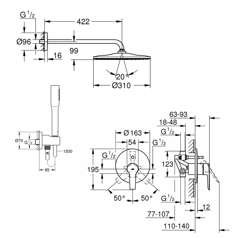 Il SET DOCCIA GROHE START CON SOFFIONE TONDO 310 MONO CROMATO è la giusta soluzione per momento doccia in totale relax!