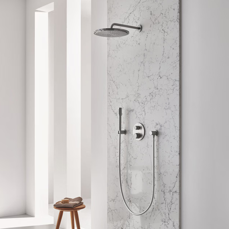 La Gamma di docce Grohe è caratterizzata da tecnologie e design. La tecnologia GROHE DreamSpray consente di avere un flusso d’acqua omogeneo a tutti gli ugelli del soffione. La funzione DropStop impedisce lo sgocciolamento dal soffione quando si trova in posizione orizzontale e la valvola è chiusa e con la tecnologia GROHE EcoJoy è possibile diminuire la quantità dell'acqua senza rinunciare alle prestazioni mentre
