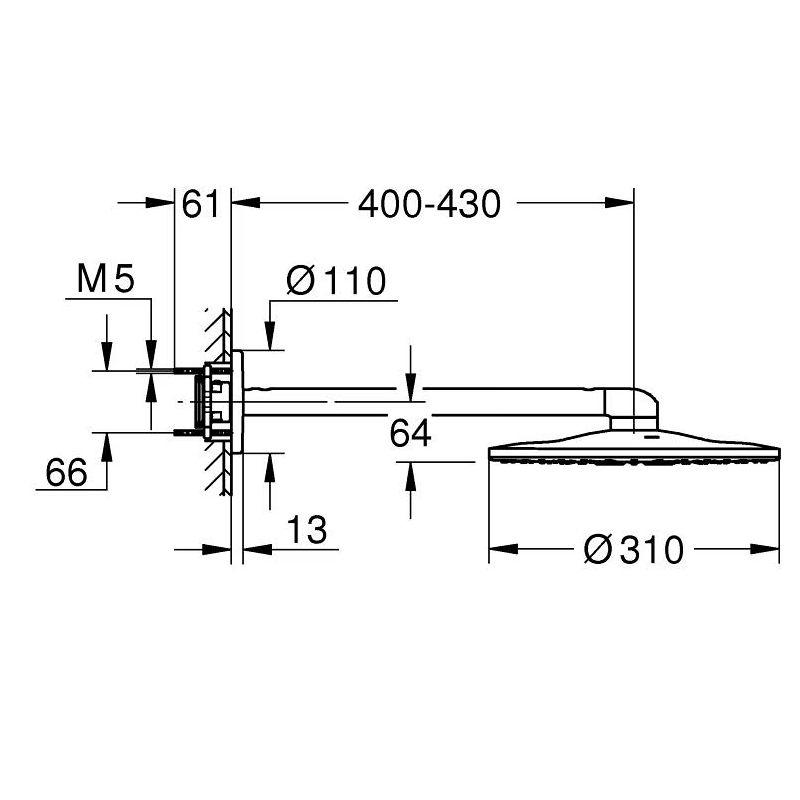 Questo prodotto richiede il kit di montaggio GROHE Rainshower Universal 26484000 (con funzione di risparmio idrico GROHE EcoJoy) o 26483000 (senza GROHE EcoJoy), da acquistare separatamente.
