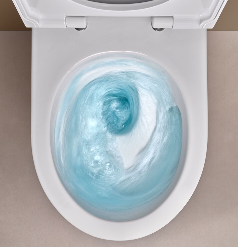 Il vaso senza brida Geberit Acanto è dotato di sistema di scarico TurboFlush, ovvero il risciacquo a spirale, un vero e proprio vortice di acqua confortevole. Questo consente di ottenere una pulizia più veloce e soprattutto più accurata sull’intero WC.